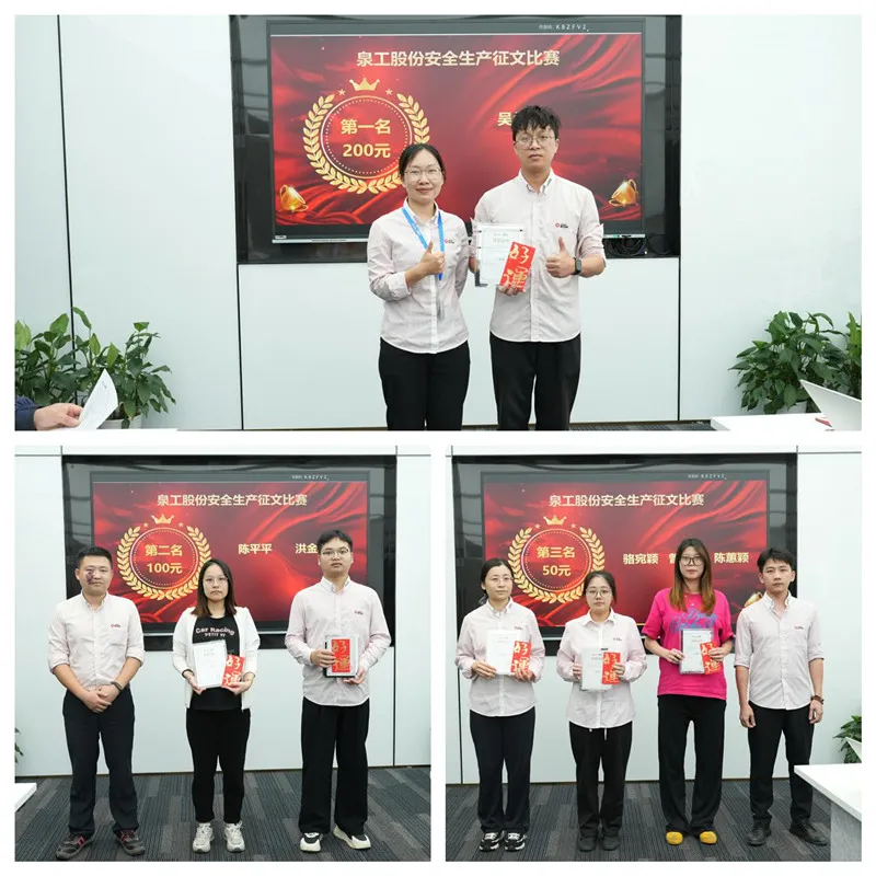 Setelah semakan dengan teliti oleh Jawatankuasa Keselamatan Pengeluaran Syarikat, 6 karya cemerlang akhirnya dipilih. Esei yang sangat baik ini bukan sahaja menunjukkan perhatian yang tinggi dan pemahaman yang mendalam tentang keselamatan pengeluaran, tetapi juga menyediakan bahan -bahan dan rujukan yang berharga untuk pembinaan budaya keselamatan syarikat. Melalui persaingan esei ini, konsep keselamatan telah disebarkan secara meluas dalam syarikat, meningkatkan lagi kesedaran keselamatan dan rasa tanggungjawab semua pekerja.